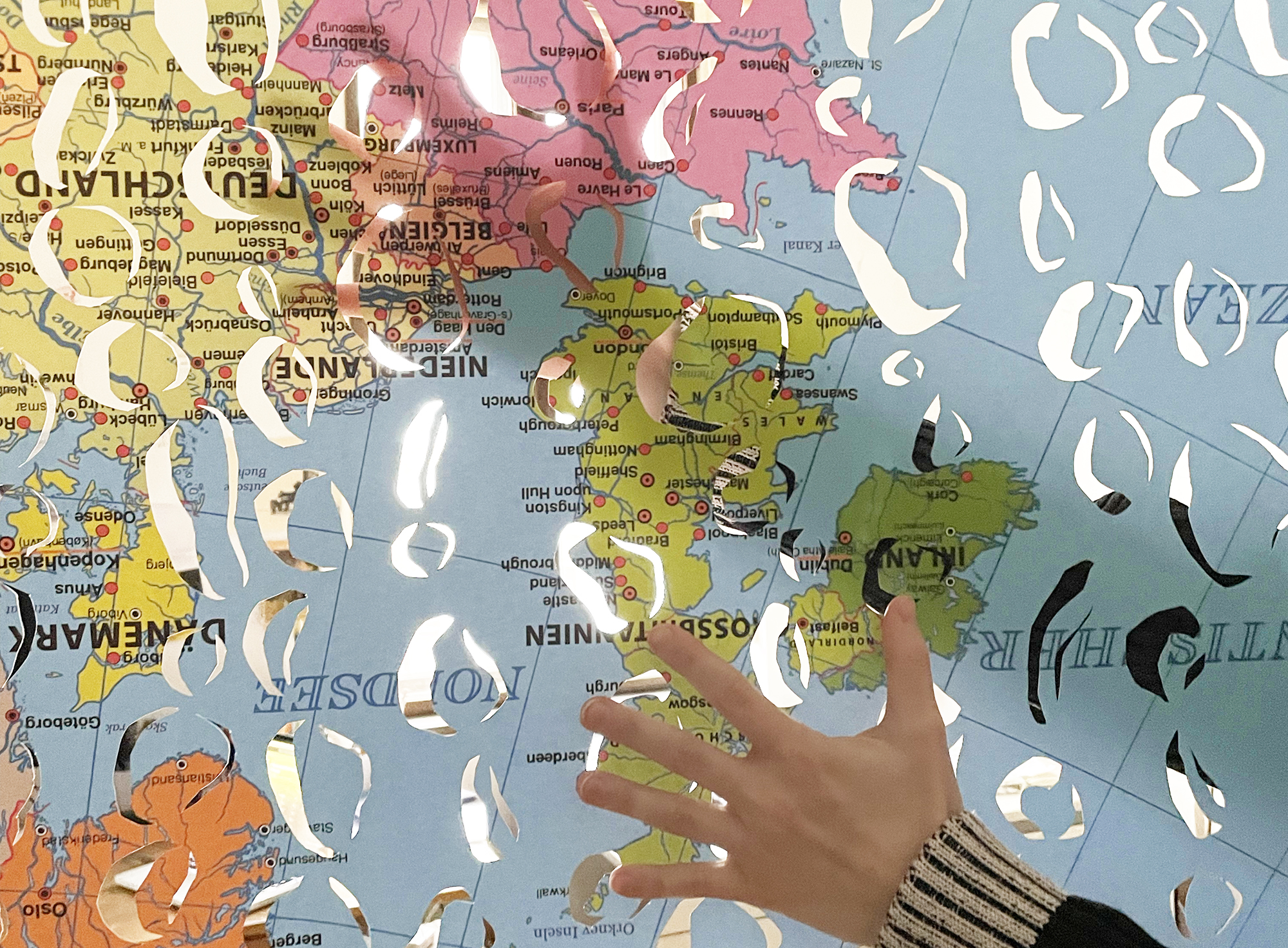 Internationale Gemeinschaft 02 / Beschnittene Schulkarte / ca. 100 x 130 cm / 2024