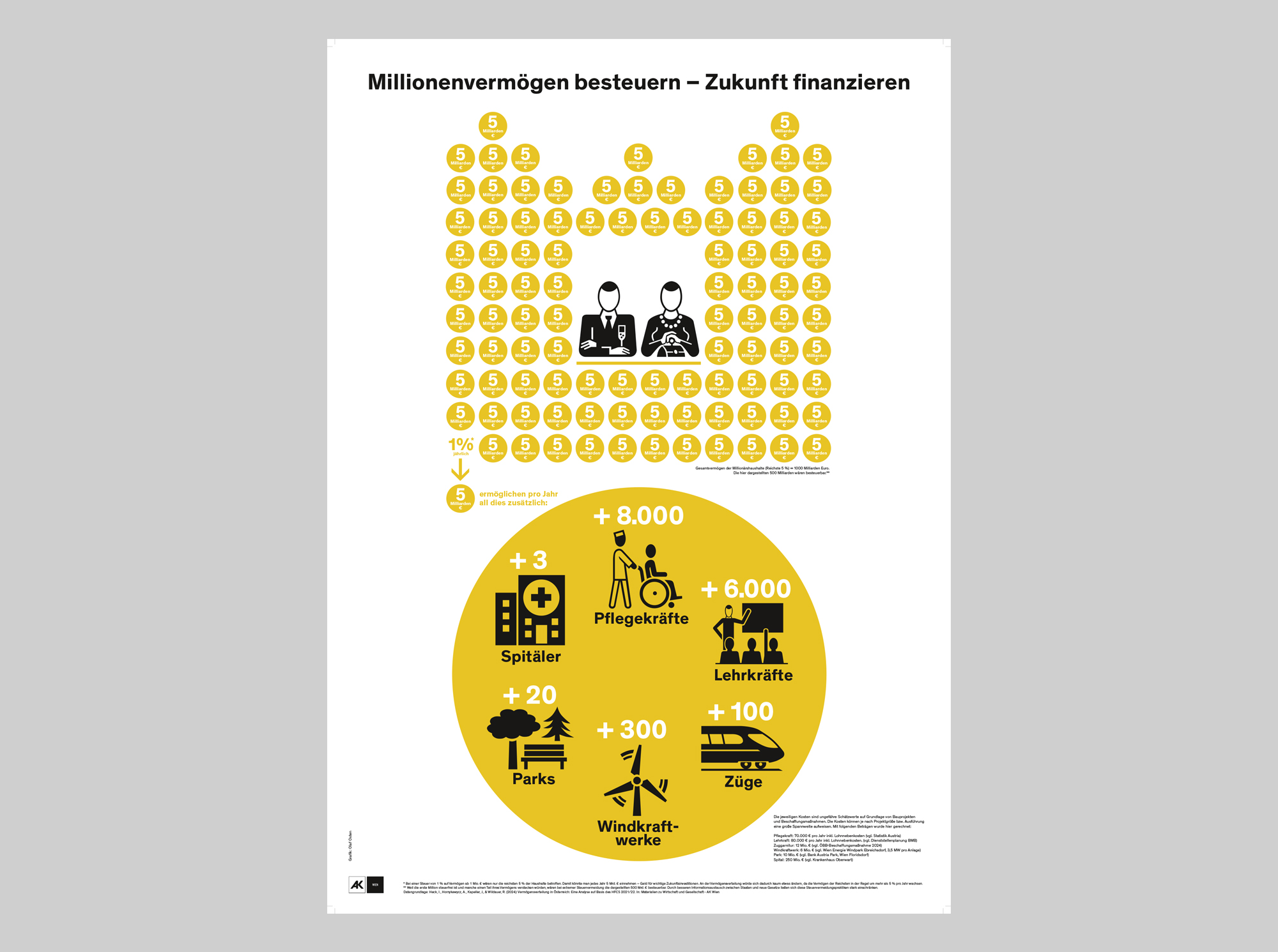 Plakat zum allgemeinen Mehrwert einer Vermögensteuer
